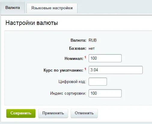 Поэтому в настройках валюты в номинале указывается 100, и в курсе указывается необходимый курс и у вас будет правильно работать пересчет в бел. рубли.