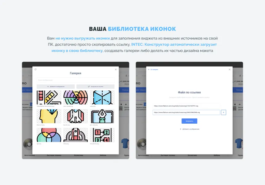 иконку в свою библиотеку, создавать галереи либо делать их частью дизайна макета