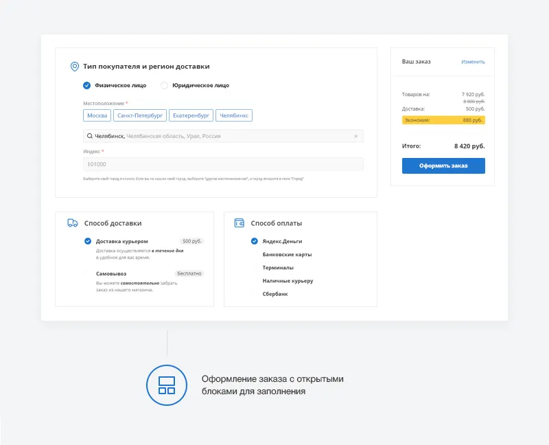 Поддержка различных способов оплаты и доставки: