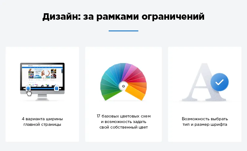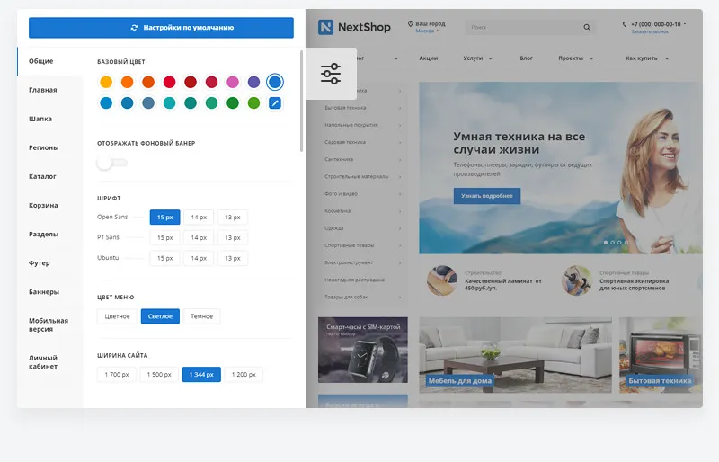 Ваш уникальный интернет-магазин на готовом решении. Легко и быстро изменяйте внешний вид главной страницы, каталога, разделов и отдельных элементов благодаря новым настройкам оформления.
