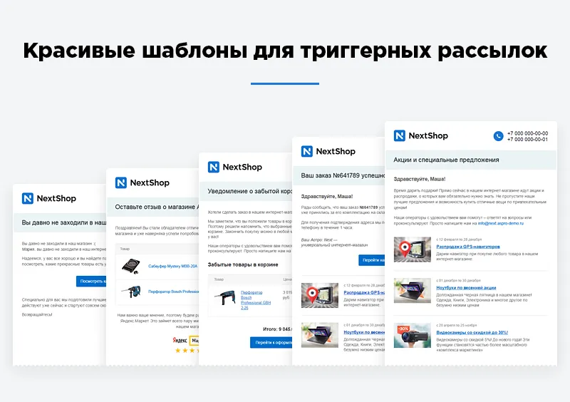 Самые важные письма уже включены в поставку – с готовым универсальным текстом, версткой, кнопками и ссылками: