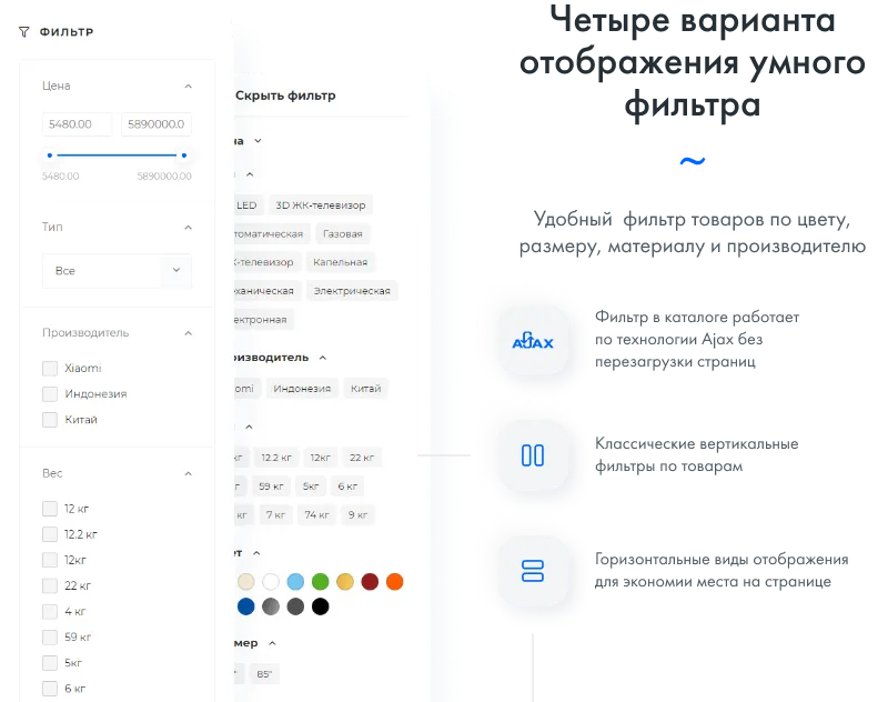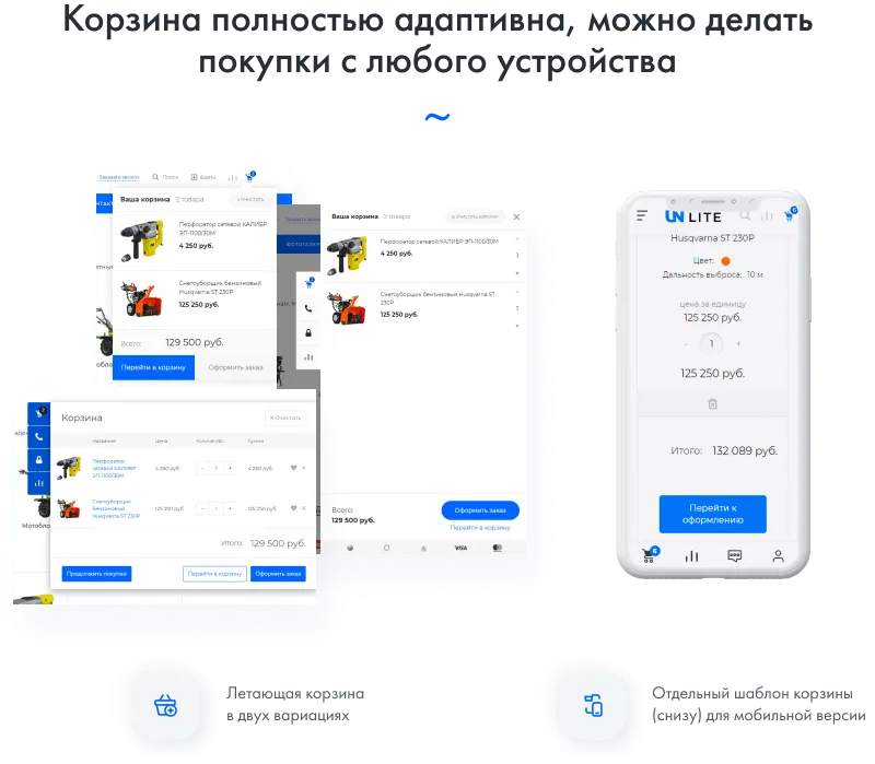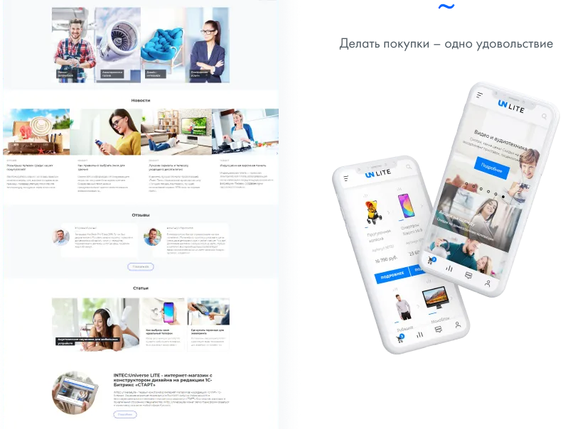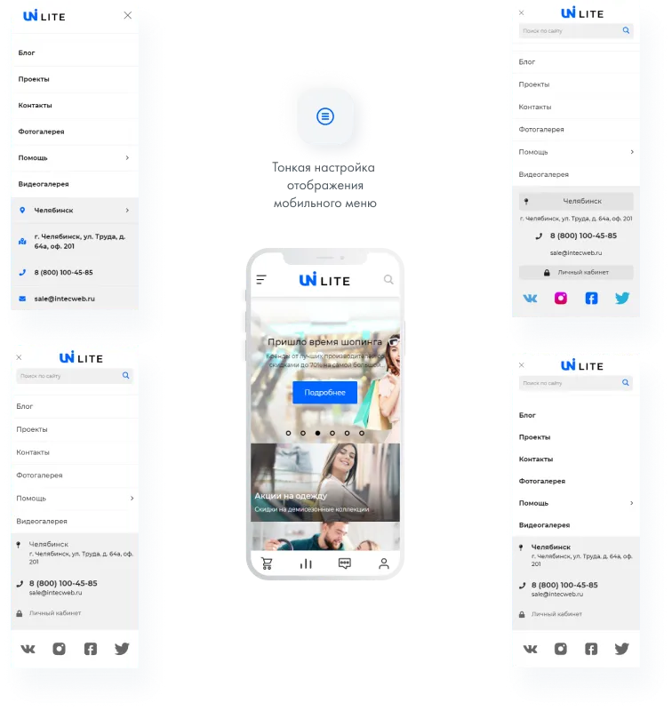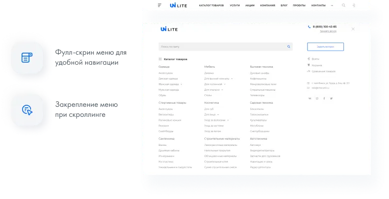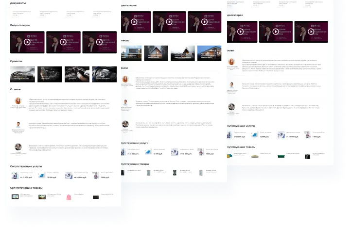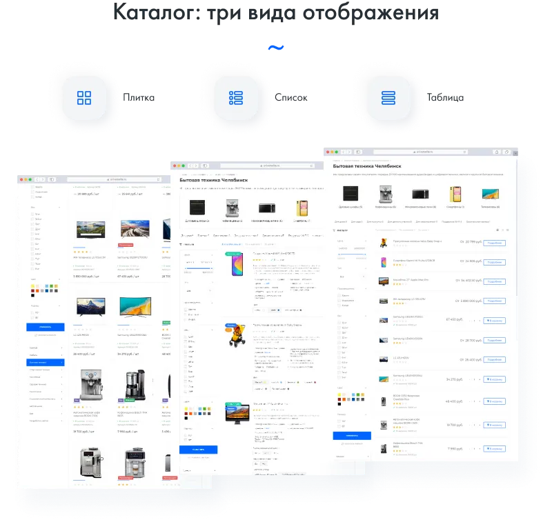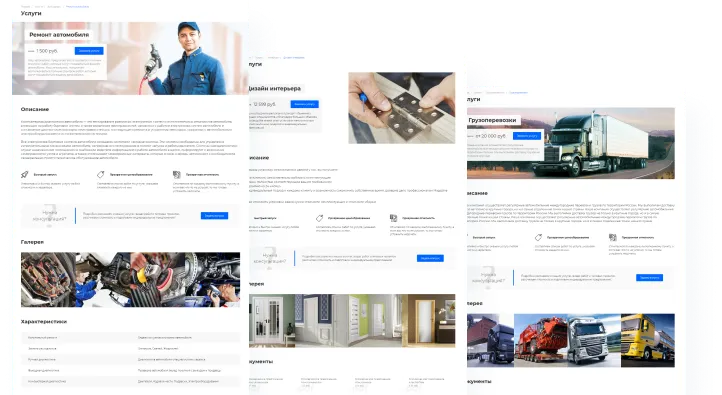 - несколько вариантов отображения основных разделов сайта: каталог, блог, новости, контакты;