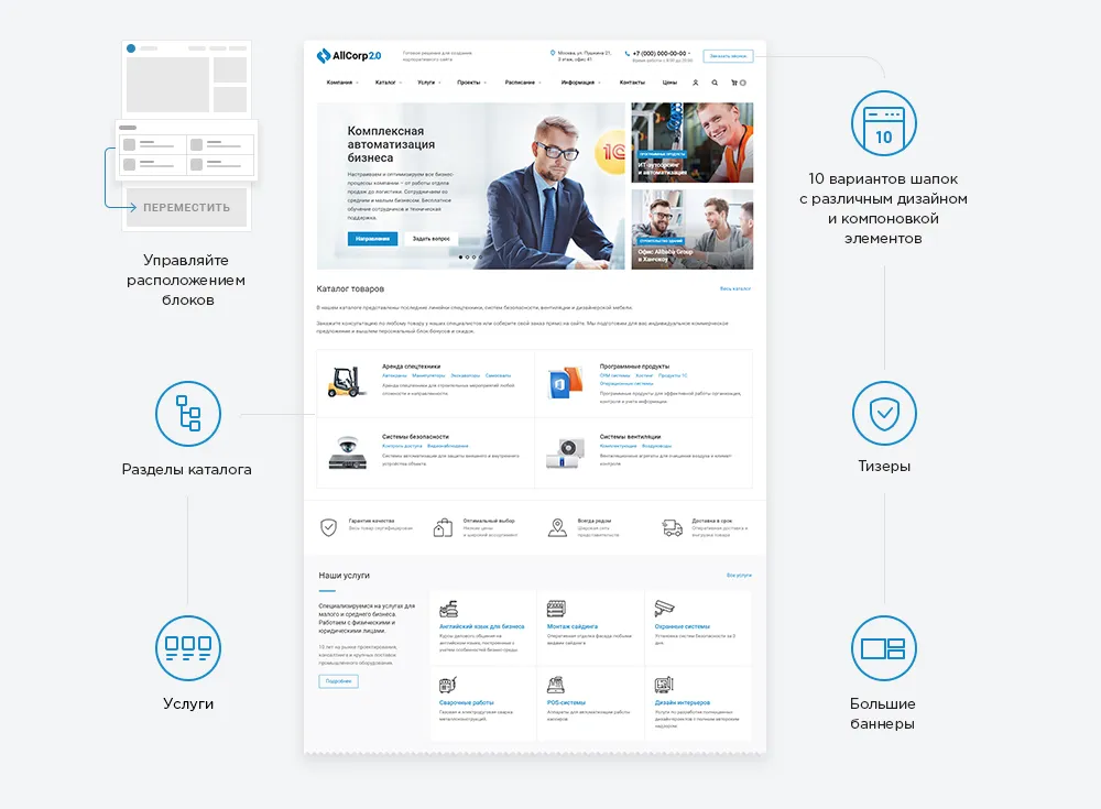 Аспро: Корпоративный сайт 2.0 – это универсальное решение, которое адаптируется к любой тематике бизнеса:
