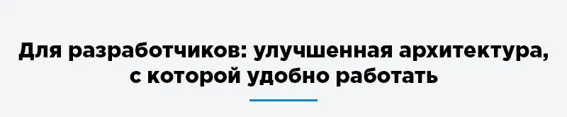 Удобно модифицировать, легко обновляться! Экономьте время и деньги на запуске и доработке проектов ваших клиентов. Благодаря улучшенной архитектуре вы сможете развивать проекты без отказа от обновлений решения и платформы.