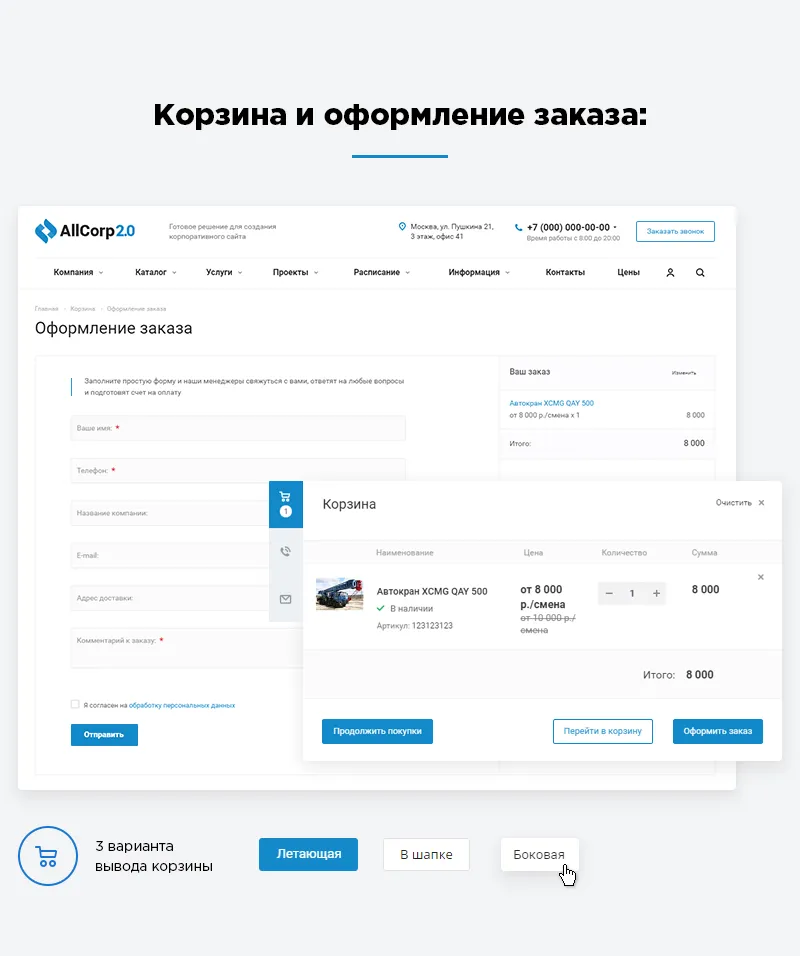 - отдельные настройки для каталога товаров, корзины и личного кабинета