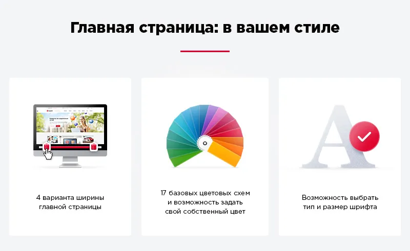Ваш уникальный сайт на готовом решении. Принципиально новый подход к управлению внешним видом, структурой и контентом сайта. Легко и быстро изменяйте все, что захотите – от блоков на главной странице до размера шрифтов и стиля заголовков. Миллионы вариантов, и ни одного повторения.