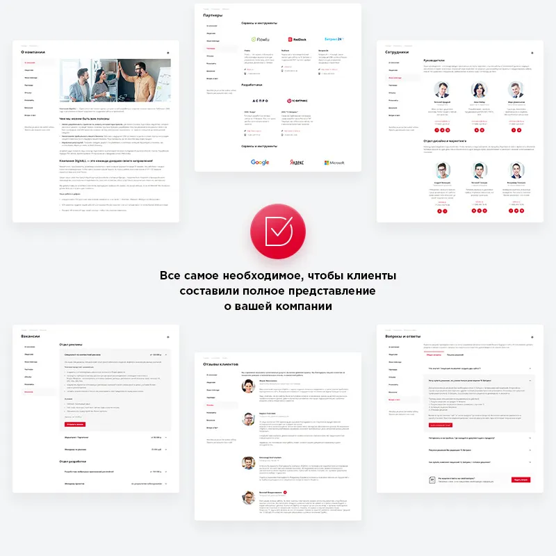Расскажите, чем вы можете быть полезны вашим клиентам и потенциальным сотрудникам с помощью контентного раздела с готовой структурой: