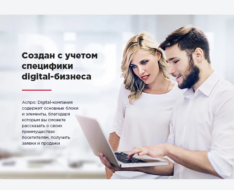 Аспро: Digital-компания – это универсальный сайт компании, созданный с учетом специфики digital-бизнеса. Первое решение на 1С-Битрикс: Маркетплейс для веб-студий, интернет-агентств, интеграторов и мобильных разработчиков. Используйте безграничные возможности, чтобы создать ваш уникальный сайт на основе готового решения!