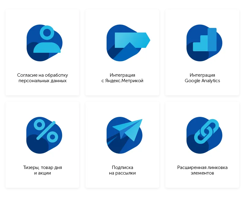 Перекрестные продажи и система связей помогут увеличить конверсию сайта в заявки. Настраивайте связи элементов между собой: товары, услуги, акции, отзывы, проекты.