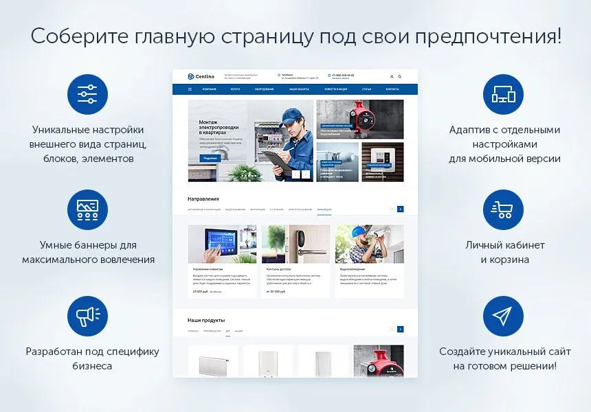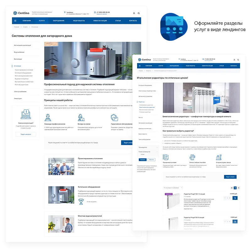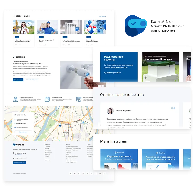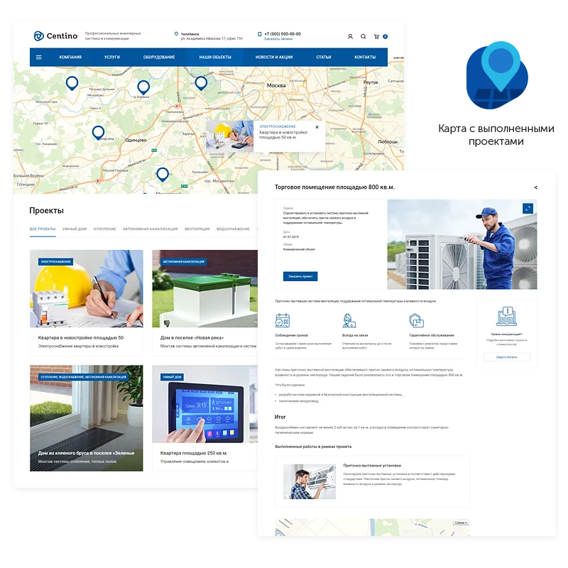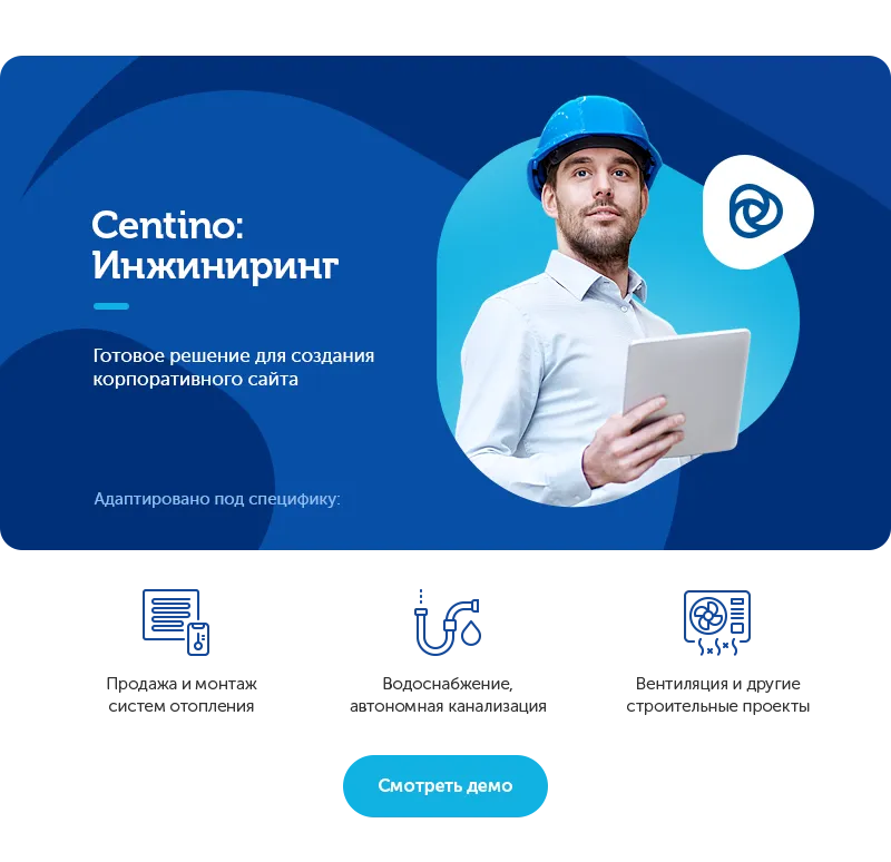 Centino: Инжиниринг – корпоративный сайт для компаний в сфере проектирования и строительства инженерных коммуникаций. Готовое решение адаптировано под специфику бизнеса продажи и монтажа систем отопления, водоснабжения, автономной канализации, вентиляции и других строительных проектов.