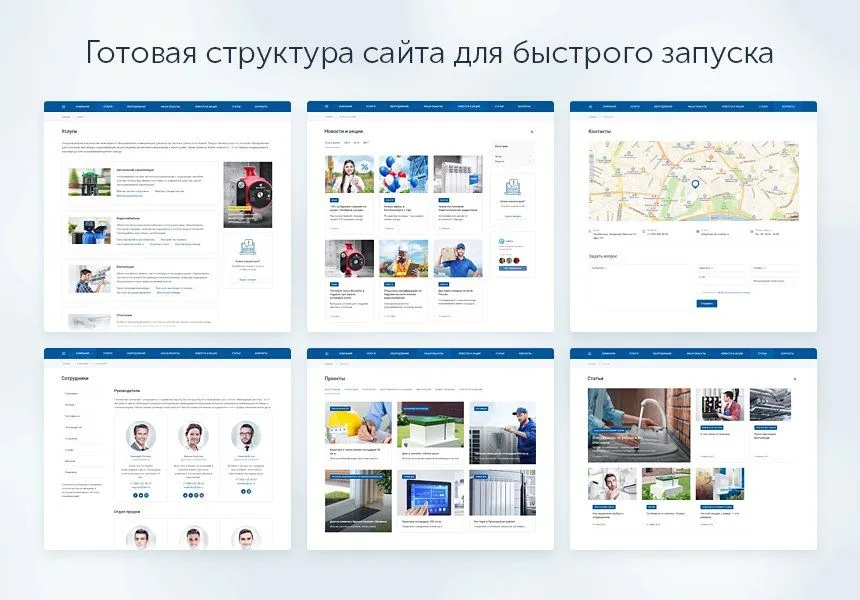 Пользователи хотят получить готовый продукт: канализацию, свежий воздух или свет. Поэтому расскажите о компании те факты, которые будут интересны клиентам, а не только вам. Польза, миссия и позиция завоюют доверие и авторитет. Раздел сотрудников и вакансий покажут профессионализм команды и привлекут новые лица.