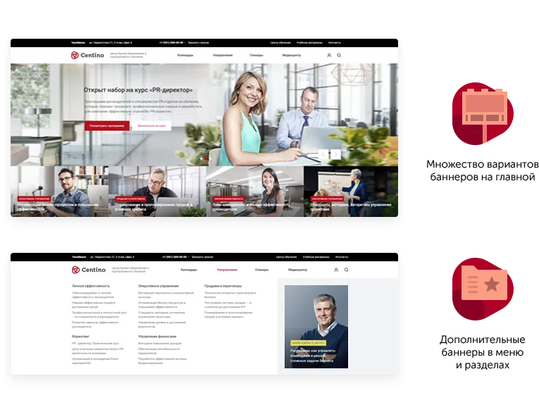 - Баннер в разделе направлений. Расскажите о выгодных условиях обучения в вашем центре;