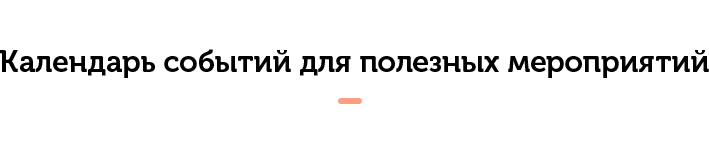 - Календарь событий для презентации мероприятий. Презентуйте предстоящие события в виде лендингов. Описывайте бизнес-ценности,  программу мероприятия и добавляйте выступающих спикеров.
