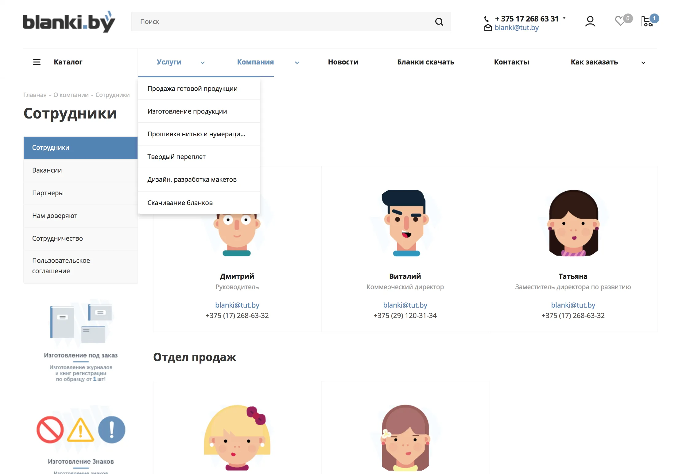 Сайт blanki.by работает с 2008 года, изменялся несколько раз, но пришло время серьезных перемен. Мы запустили полностью новый сайт на системе «1С-Битрикс» с сохранением всех необходимых материалов и товаров с прошлого сайта. Это было не просто осуществить, учитывая систему на которой работал сайт, но инструменты Битрикса нам помогли в решении этой проблемы. А технология «композитный сайт» повысила скорость работы и так уже быстрого сайта.