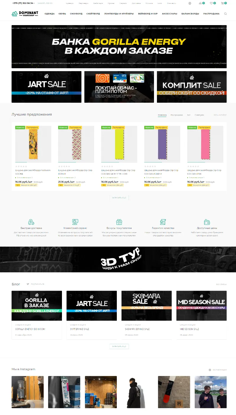 Новый крутой сайт для магазина спортивных товаров "DOMINANT"