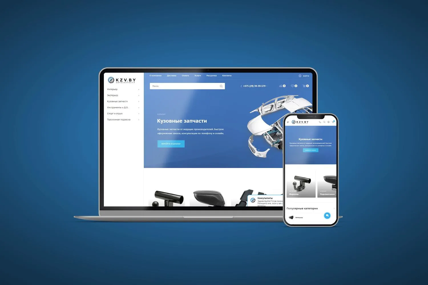 Запустили абсолютно новый сайт для интернет-магазина автозапчастей KZV