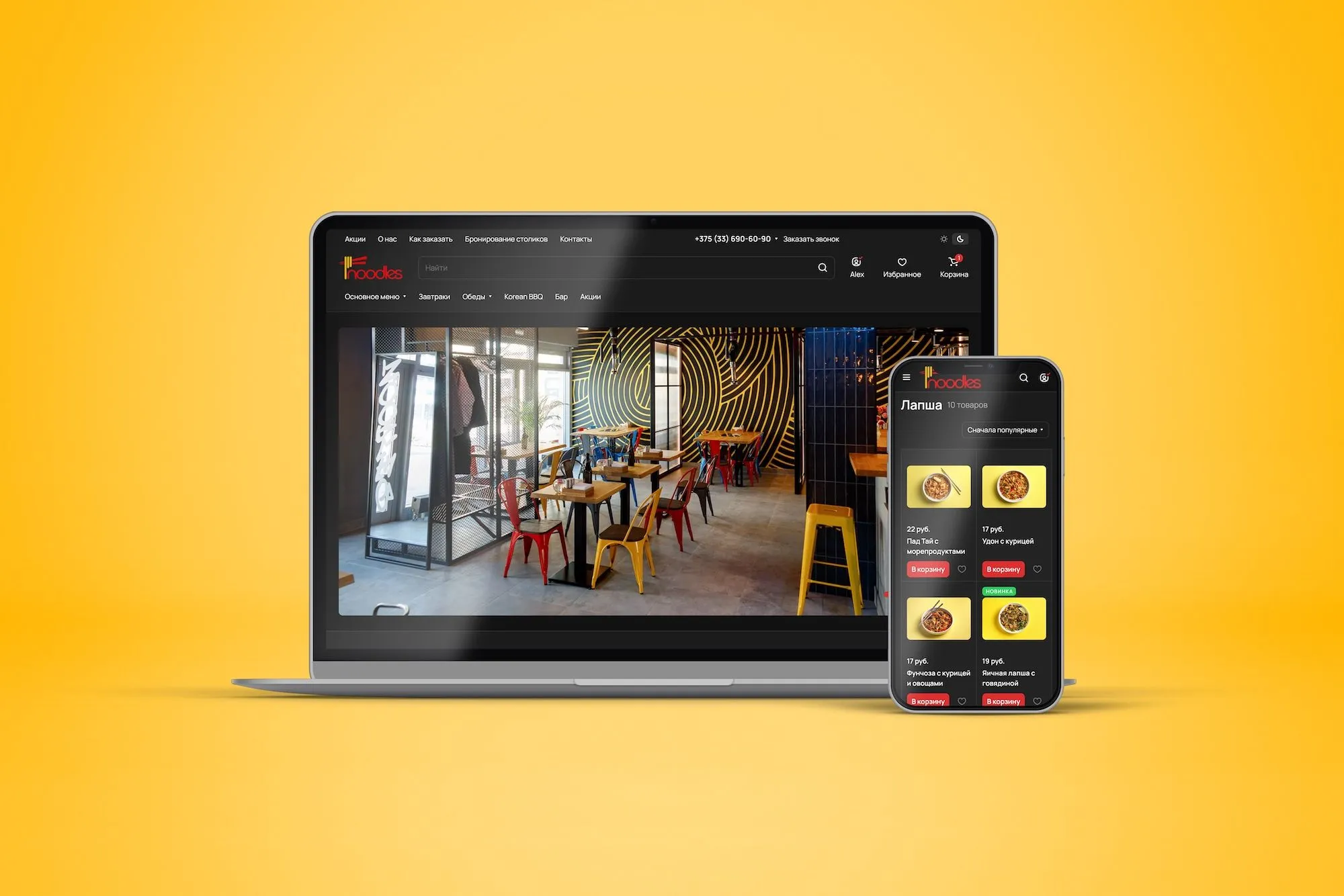 Полностью новый сайт для лапшичной NOODLES в темном стиле.